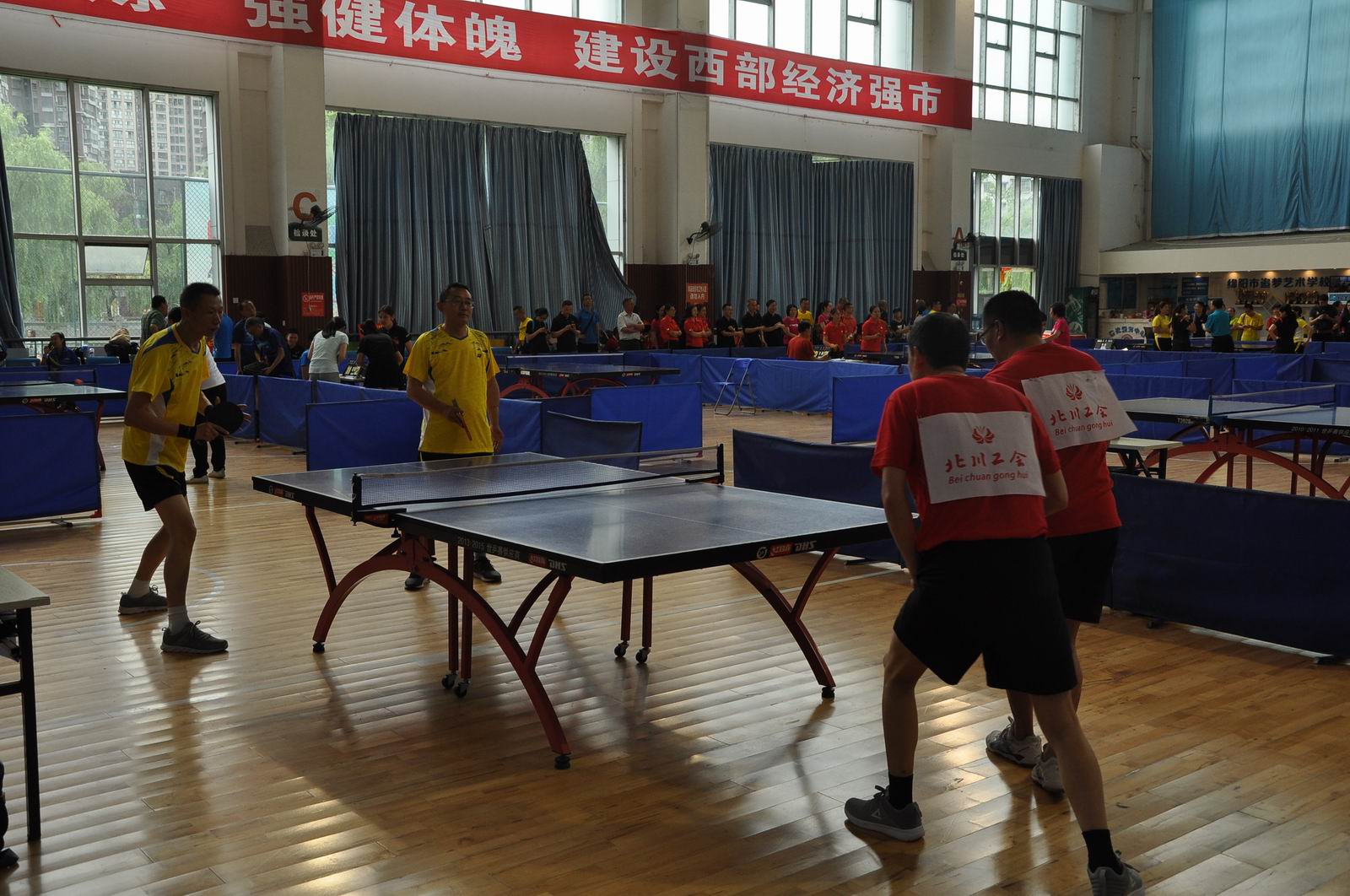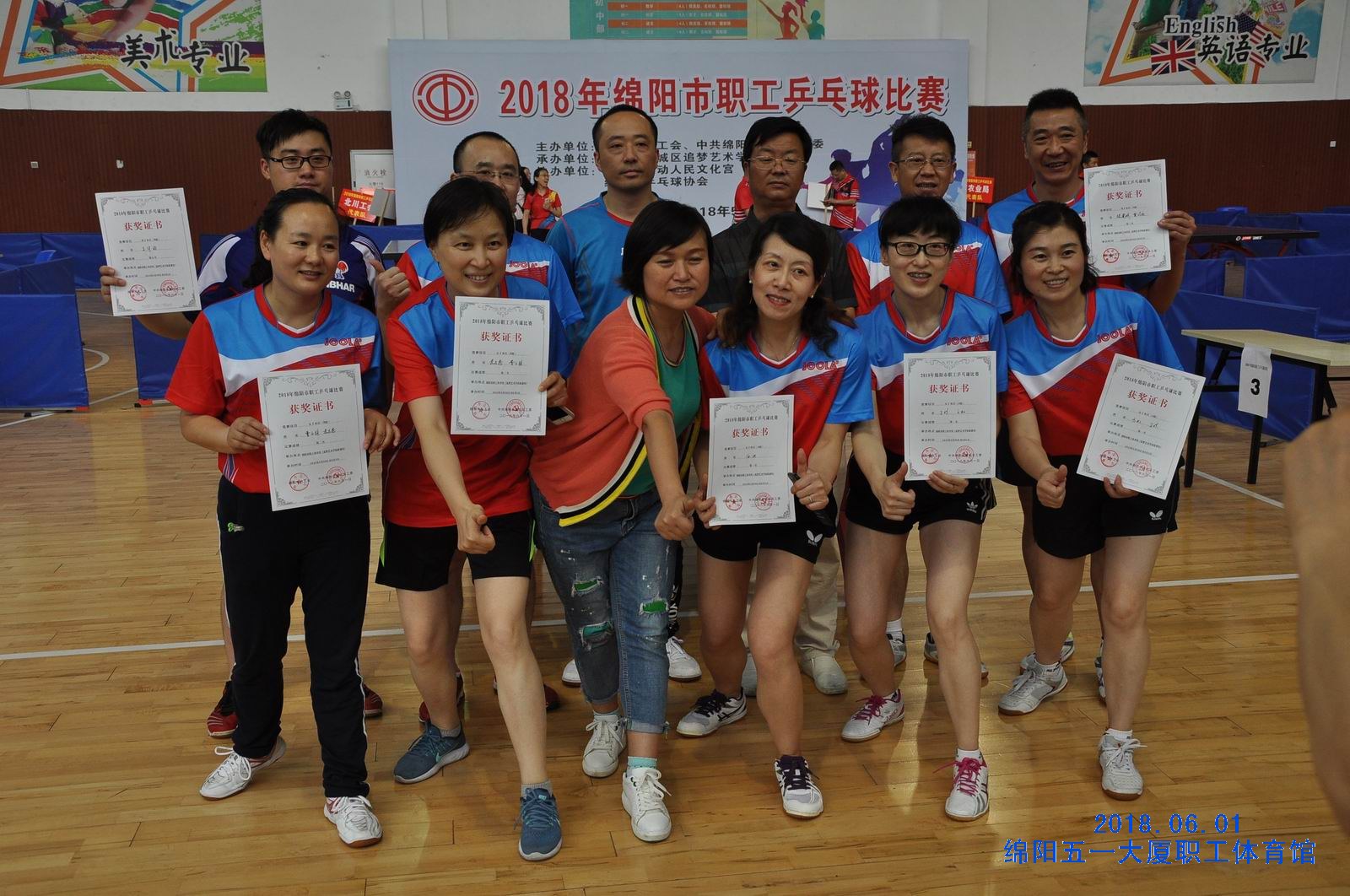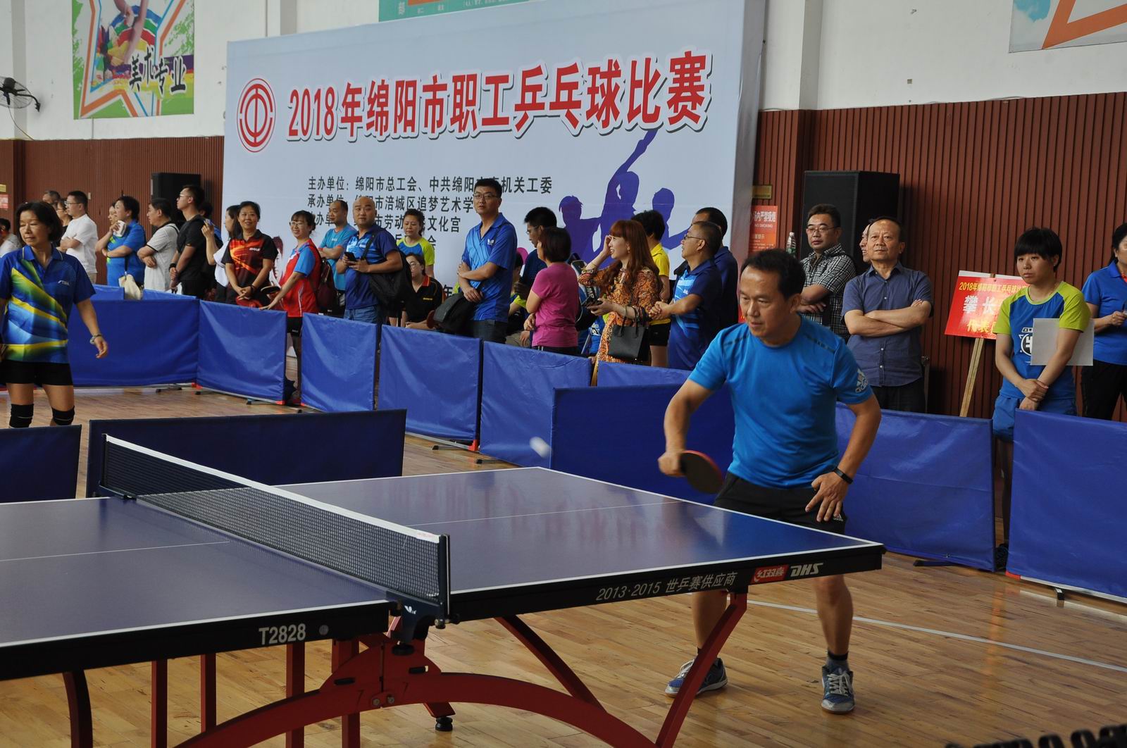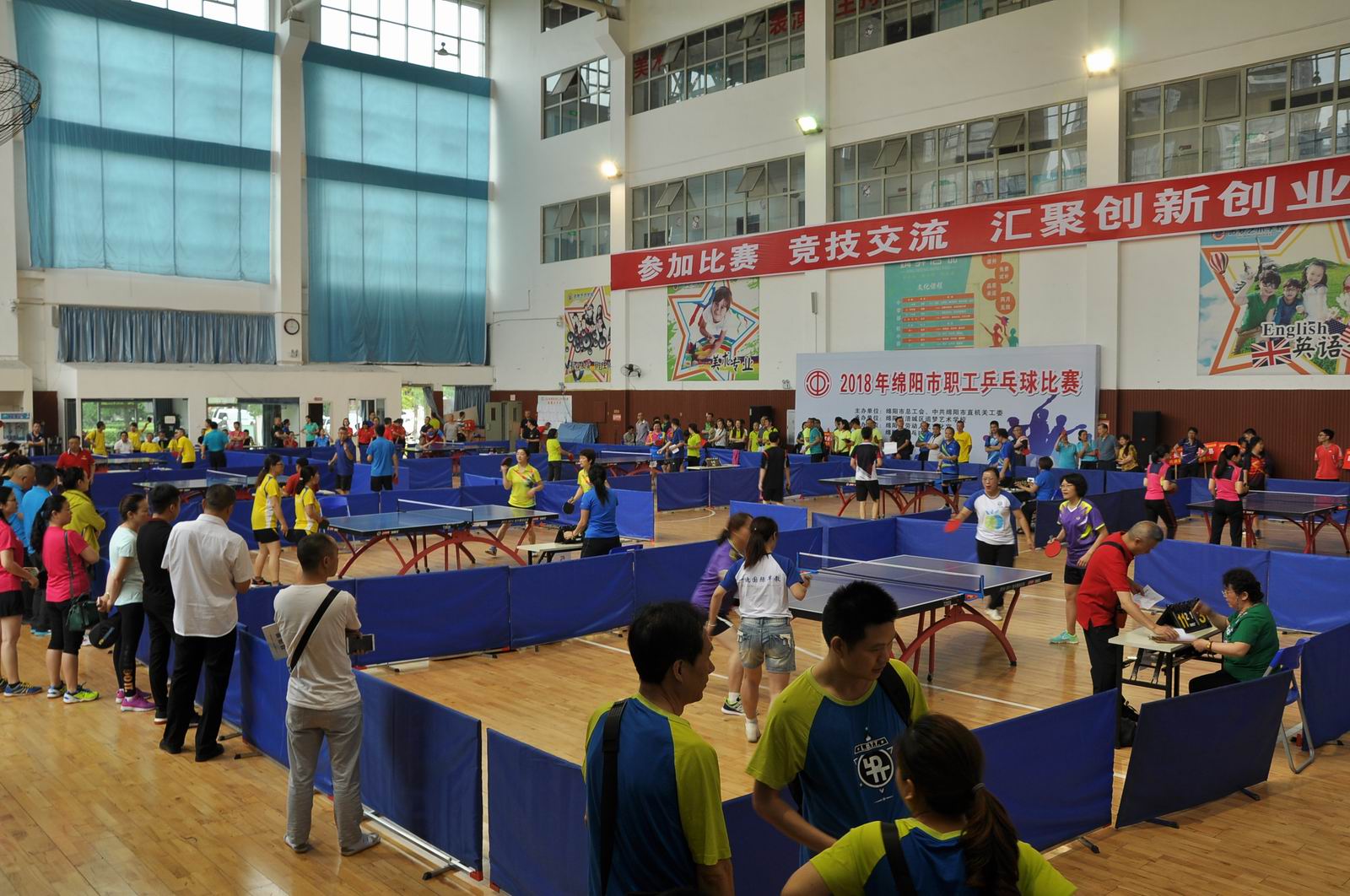 5月30日至6月1日,由绵阳市总工会、中共绵阳市直机关工委主办,绵阳市涪城区追梦艺术学校承办,绵阳市劳动人民文化宫、绵阳市乒乓球协会协办的“2018绵阳市职工乒乓球比赛”在五一大厦举办。来自各县市区、市级机关、事业、企业的43支代表队240余名运动员齐聚赛场,参加了45岁以上和45岁以下两个年龄组男子单打、男子双打、女子单打、女子双打的比赛,每个组别分别决出男子单打、男子双打、女子单打、女子双打前8名。
