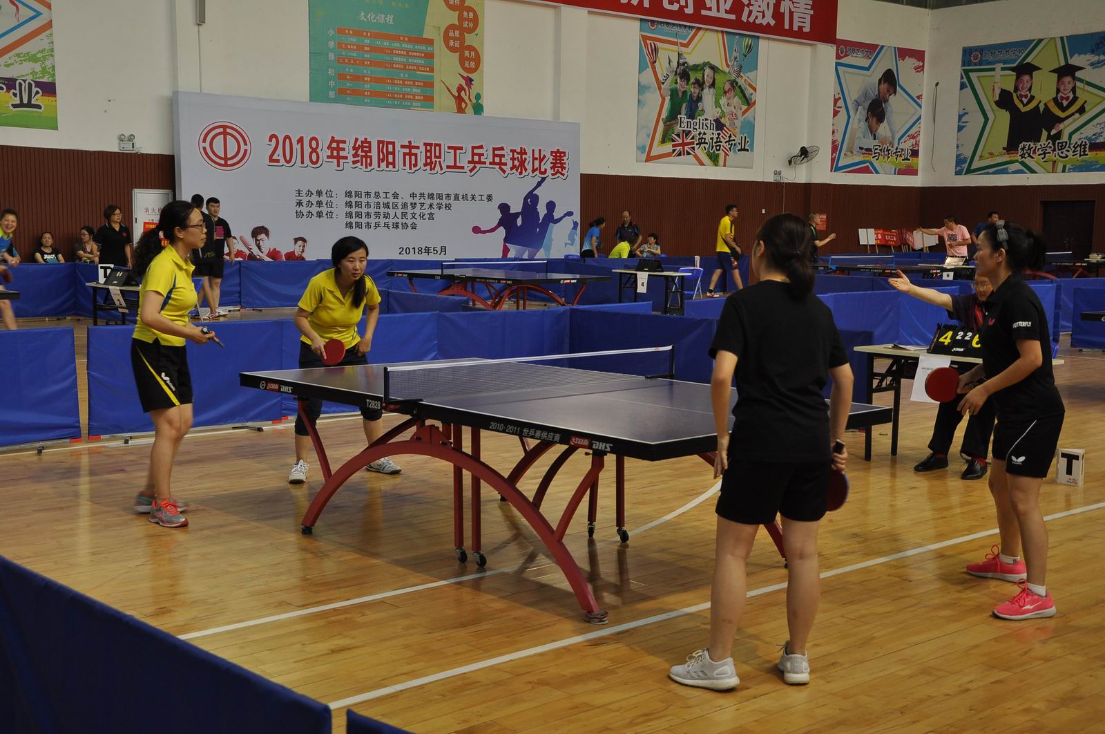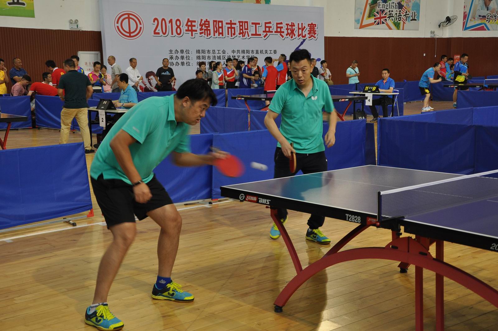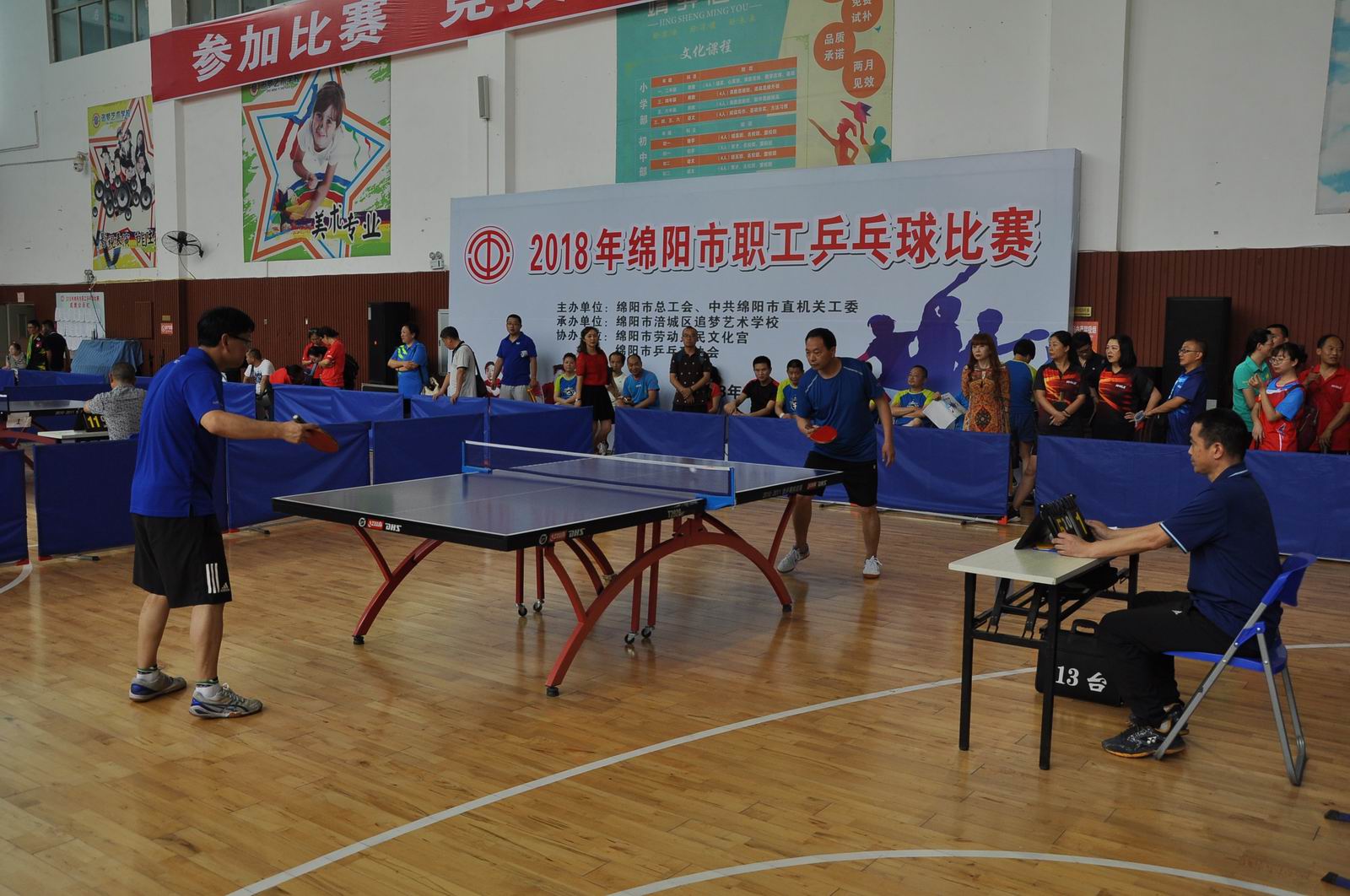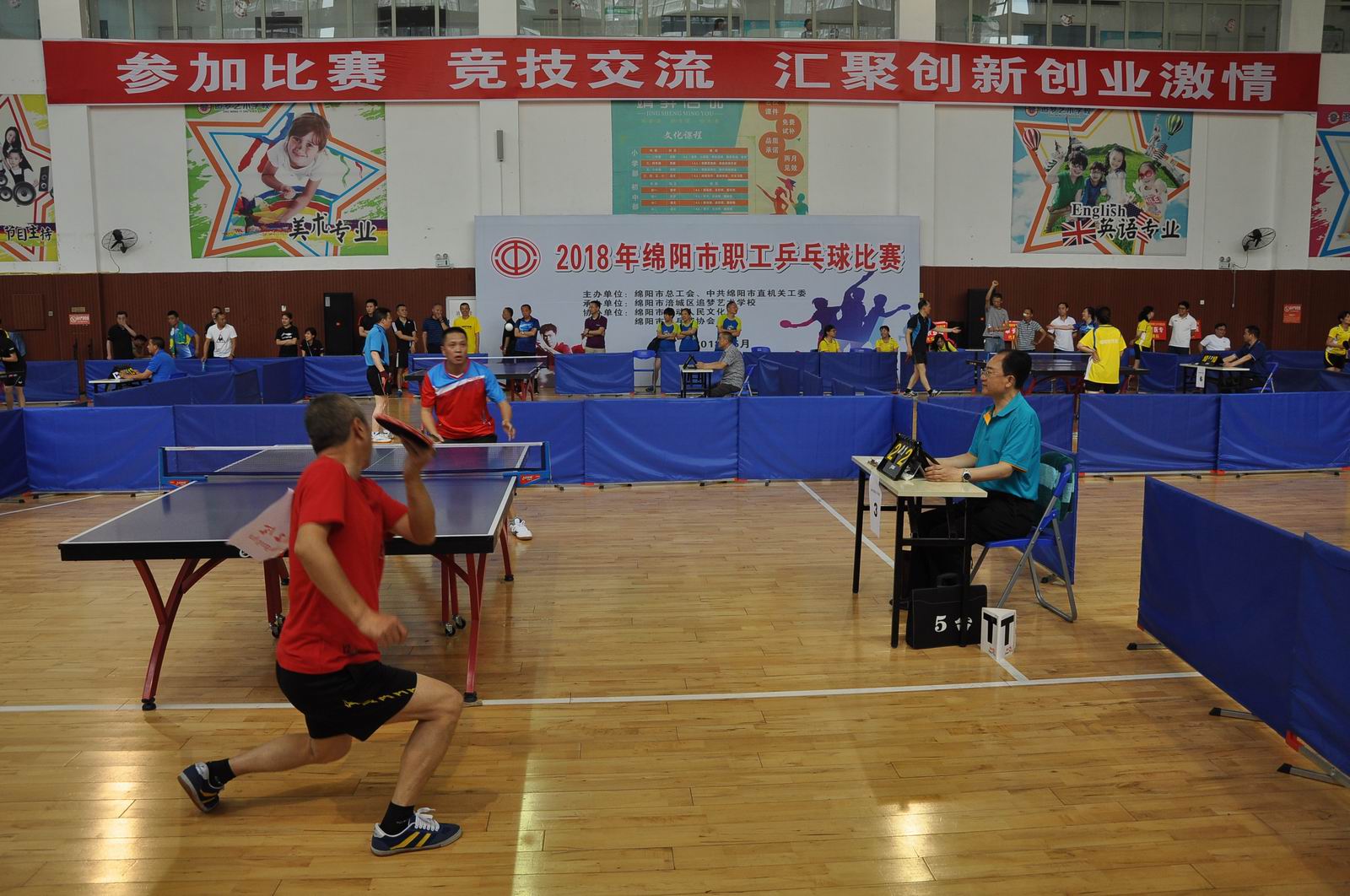 5月30日至6月1日,由绵阳市总工会、中共绵阳市直机关工委主办,绵阳市涪城区追梦艺术学校承办,绵阳市劳动人民文化宫、绵阳市乒乓球协会协办的“2018绵阳市职工乒乓球比赛”在五一大厦举办。来自各县市区、市级机关、事业、企业的43支代表队240余名运动员齐聚赛场,参加了45岁以上和45岁以下两个年龄组男子单打、男子双打、女子单打、女子双打的比赛,每个组别分别决出男子单打、男子双打、女子单打、女子双打前8名。