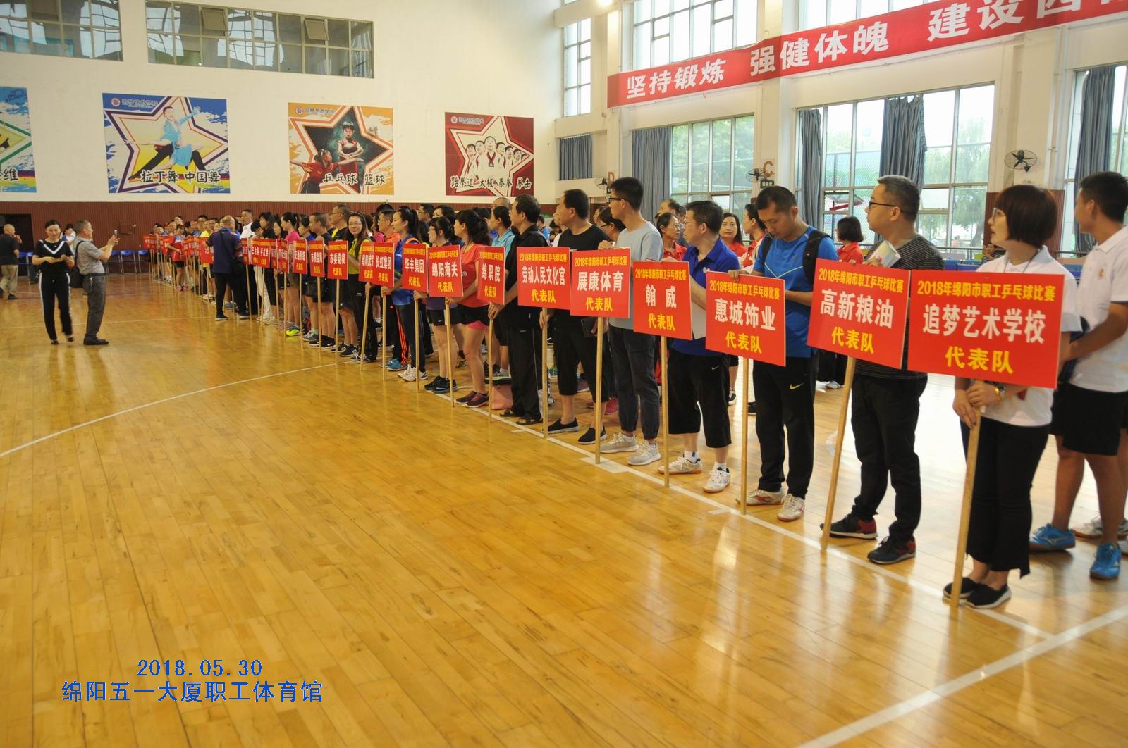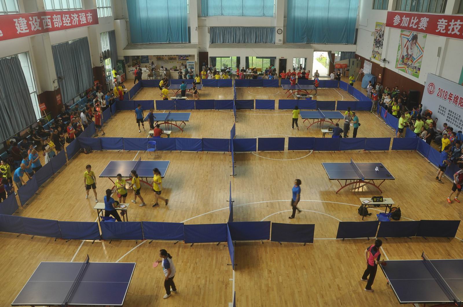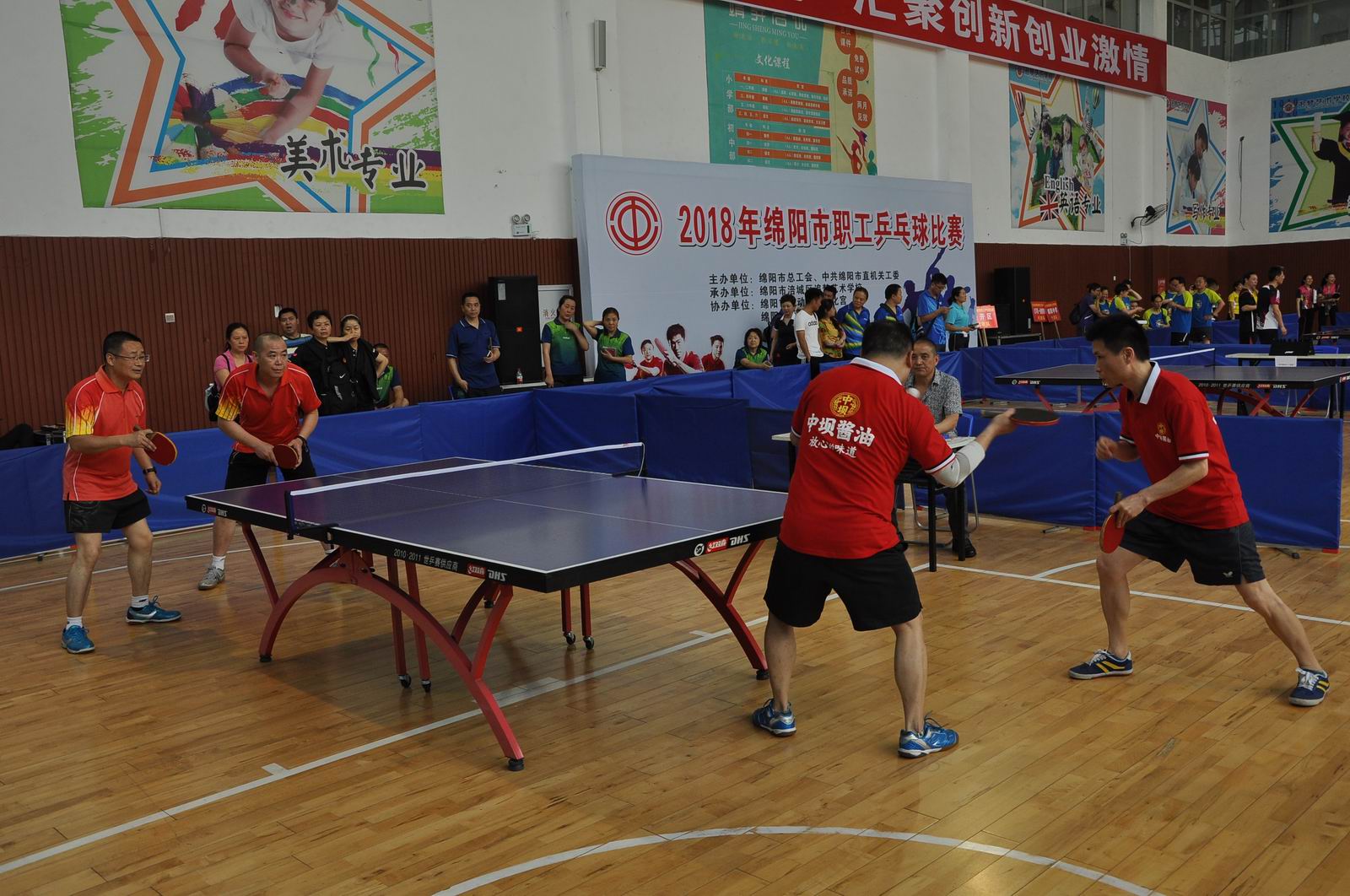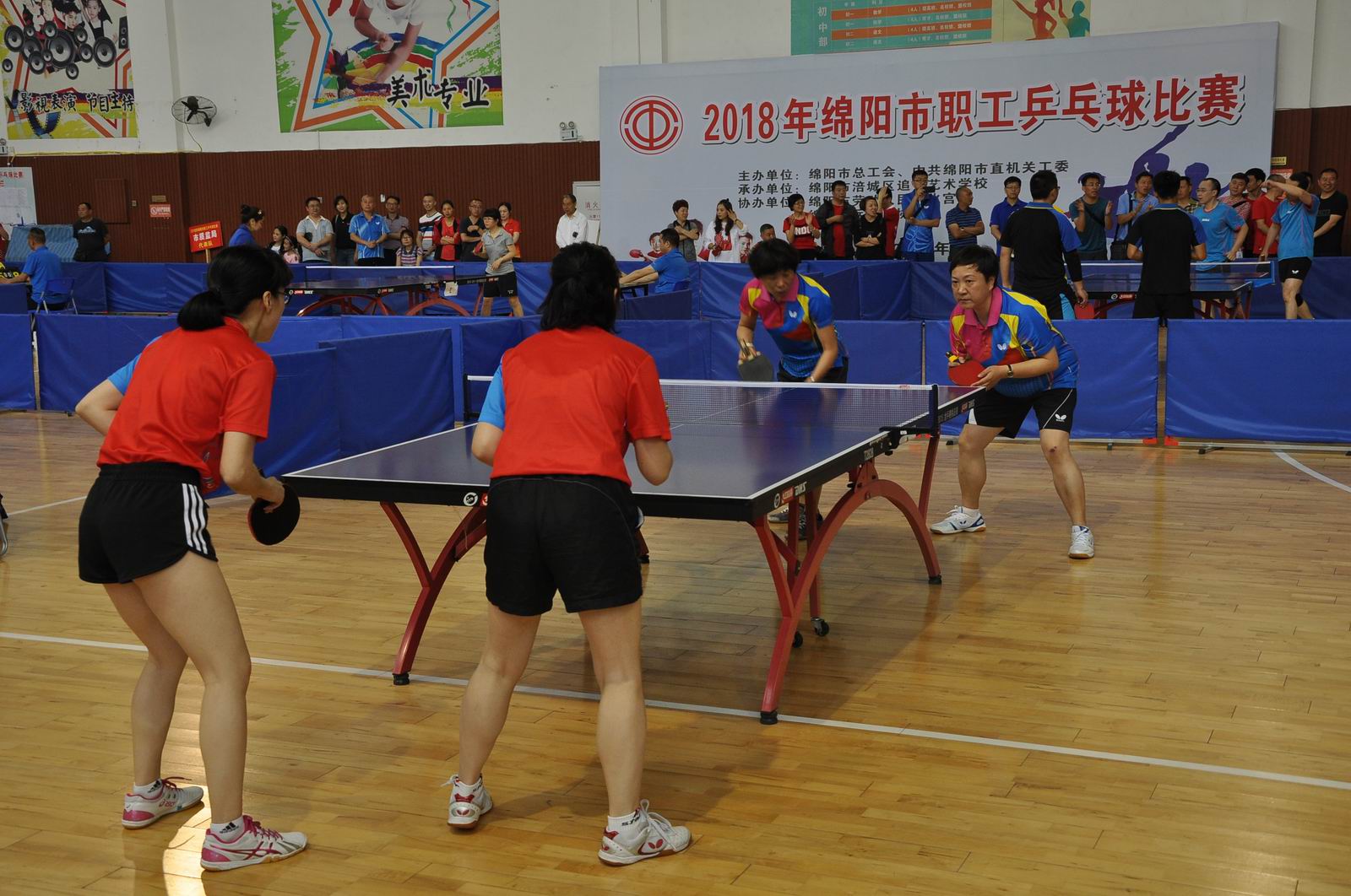 5月30日至6月1日,由绵阳市总工会、中共绵阳市直机关工委主办,绵阳市涪城区追梦艺术学校承办,绵阳市劳动人民文化宫、绵阳市乒乓球协会协办的“2018绵阳市职工乒乓球比赛”在五一大厦举办。来自各县市区、市级机关、事业、企业的43支代表队240余名运动员齐聚赛场,参加了45岁以上和45岁以下两个年龄组男子单打、男子双打、女子单打、女子双打的比赛,每个组别分别决出男子单打、男子双打、女子单打、女子双打前8名。