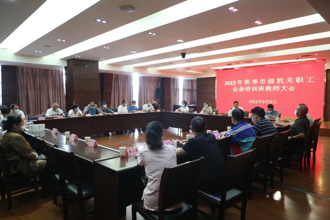 为丰富全市市级机关职工业余文化生活,保证新一期市级机关职工业余培训班顺利开班,9月9日,市总工会召开了2022年市级机关职工业余培训班教师大会,市总工会党组成员、经审会主任林瑶出席会议并讲话,培训班全体任教老师及市文化宫工作人员参加会议,市劳动人民文化宫主任刘敦亚主持会议。