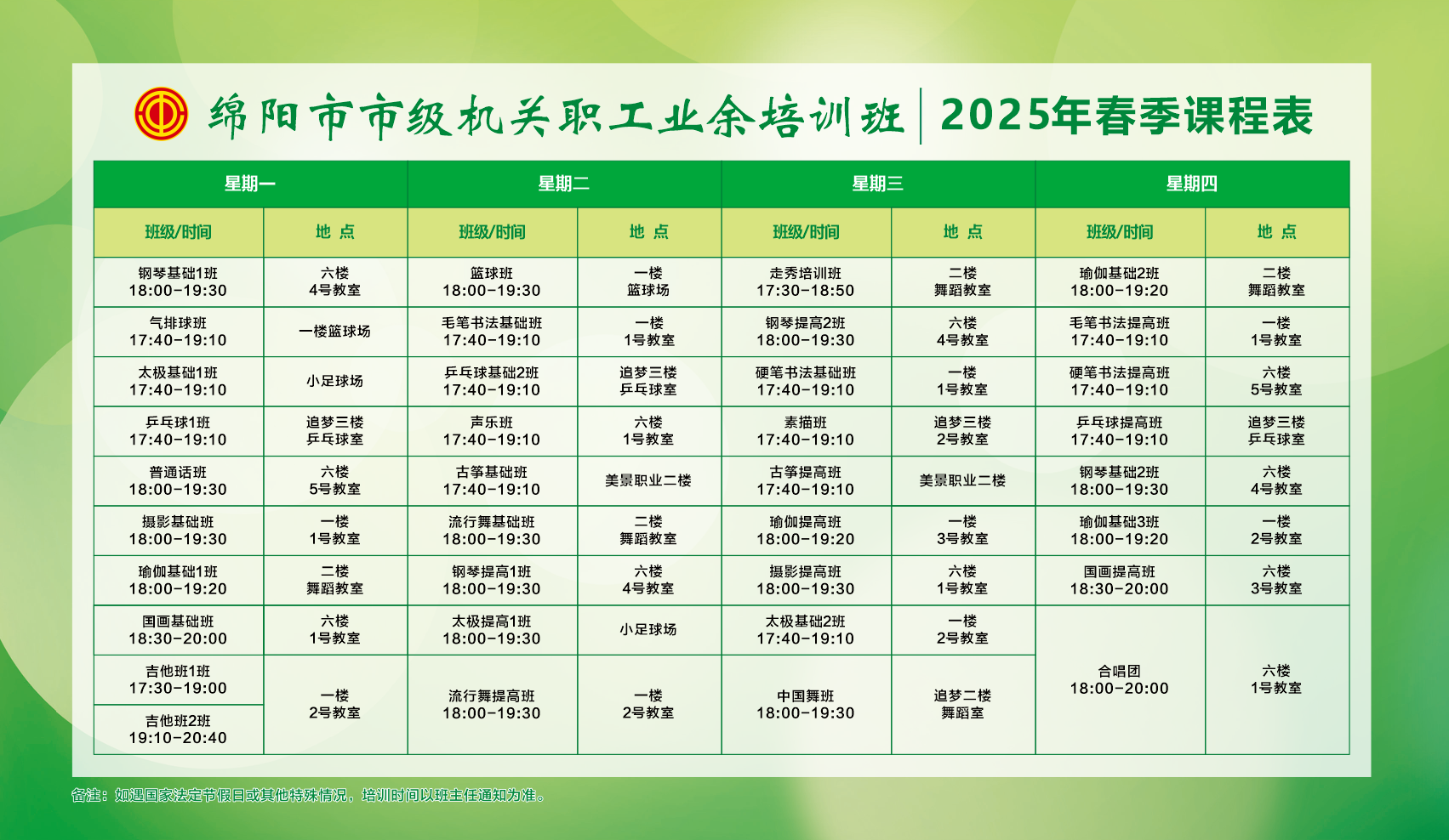 绵阳市总工会2025春季职工业余培训班