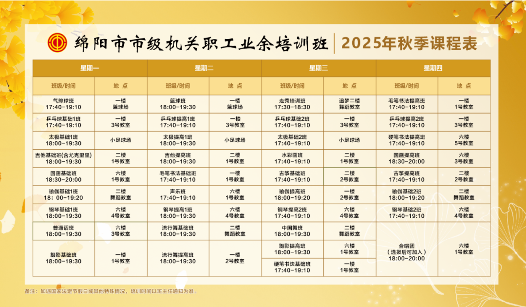 课程多多、体验多多,让我们在秋季微凉的暮色中,暂别工作的忙碌,在课程里收获热爱生活的力量,赴一场与成长的约定吧