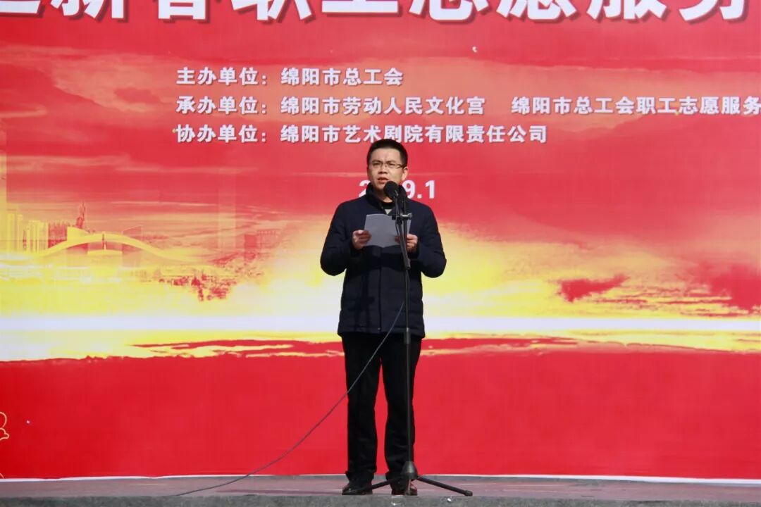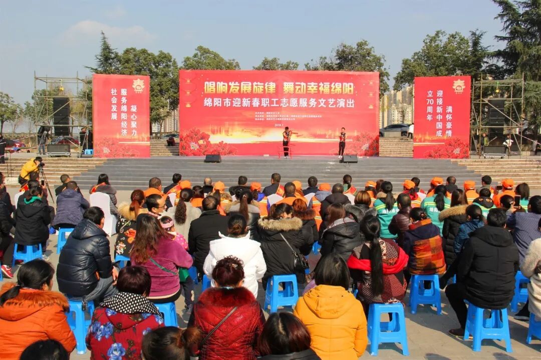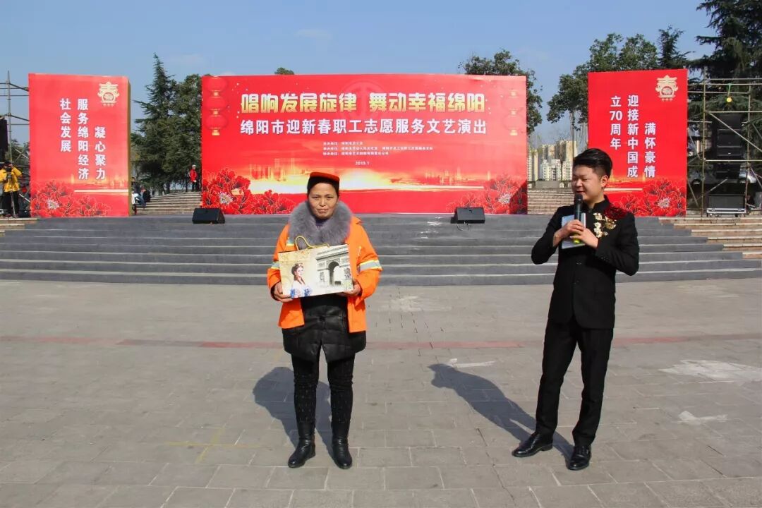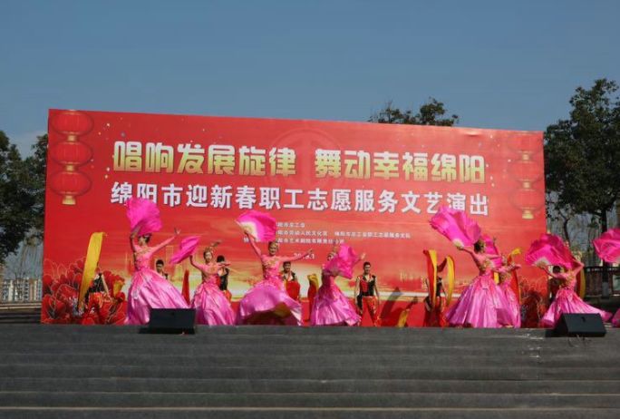 暖暖的冬阳,喜庆的广场。1月19日下午,由市总工会主办,市劳动人民文化宫、市总工会职工志愿服务支队承办的“唱响发展旋律 舞动幸福绵阳”--绵阳市迎新春职工志愿服务文艺演出,让周末的五一广场变得热热闹闹,广大职工群众在精彩的歌舞、杂技、小品演出中喜迎新春佳节的到来。