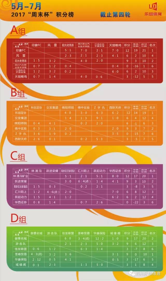 周末杯职工足球联赛小组赛第四轮在上周末如期而至,本轮比赛多场赛事直接关系到小组排名,各队尽谴主力,出现多场精彩对决。印象FC一如既往的强势拿下本轮比赛,继续位列A组第一名。科创足协四战全胜,以不败金身保持B组第一名。林清沟本轮大比分拿下高新区吉家酒店,以领头羊的身份位于C组第一名。下面请随小编来欣赏一下本轮的精彩综述: